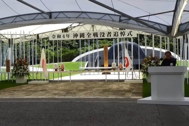 沖縄戦の組織的戦闘が終結した「慰霊の日」にあたる2022年6月23日、糸満市の平和祈念公園で全戦没者追悼式が開かれた。コロナ禍の影響で20、21年と2年連続で県外からの招待を見送られたが、3年ぶりに首相を招待した。