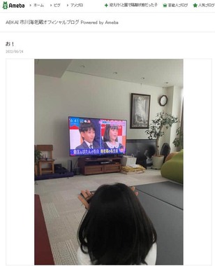 この日の6時台の投稿で海老蔵さんは、「テレビ待ってます」とのタイトルでブログを更新し、文章なしで写真のみをアップ。写真の中にはテレビのニュース番組を見つめるぼたんさんの後ろ姿が写っている。