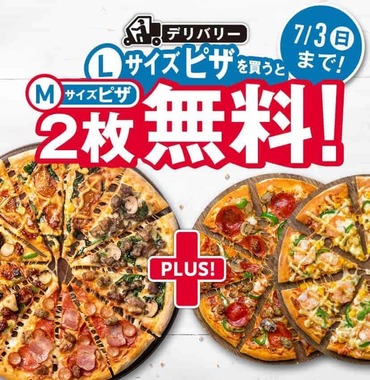 キャンペーンは、6月23日〜7月3日の間、Lサイズピザかニューヨーカーピザを1枚買うと、Mサイズのピザ2枚を無料で提供する、というもの。