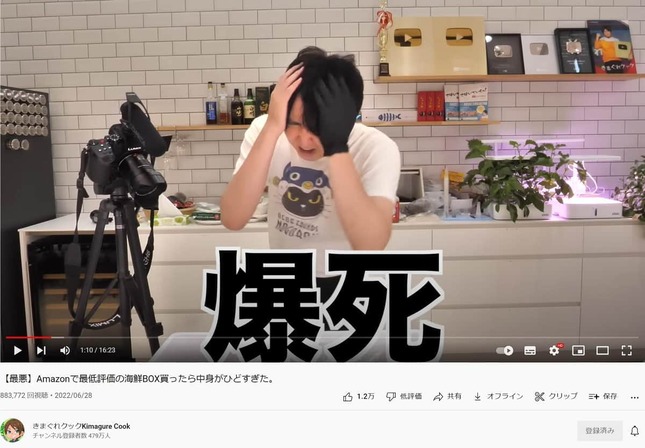 様々な魚介類をさばく動画で人気のYouTubeチャンネル「きまぐれクック」を運営するかねこさんが2022年6月28日、Amazonのレビューが最低評価である★1のついた「海鮮BOX」を購入し、調理する動画を公開した。