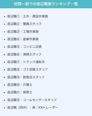 「就活の教科書」では、一部の職業を「底辺職」として取り上げた記事「【底辺職とは?】底辺の仕事ランキング一覧」が、22年6月下旬にSNS上で拡散され、職業差別を助長するとして物議を醸した。運営会社のSynergy Career(シナジーキャリア、大阪市)は、指摘を受け記事を6月28日までに削除している。
