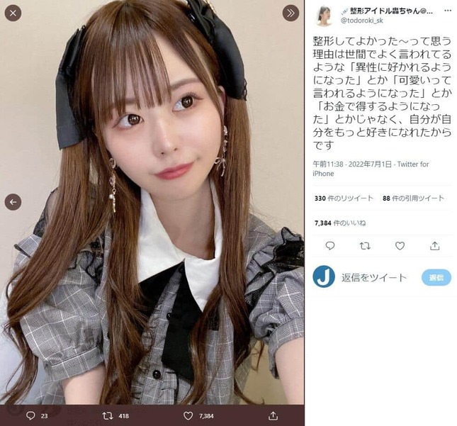— ??整形アイドル轟ちゃん@本発売した (@todoroki_sk) July 1, 2022