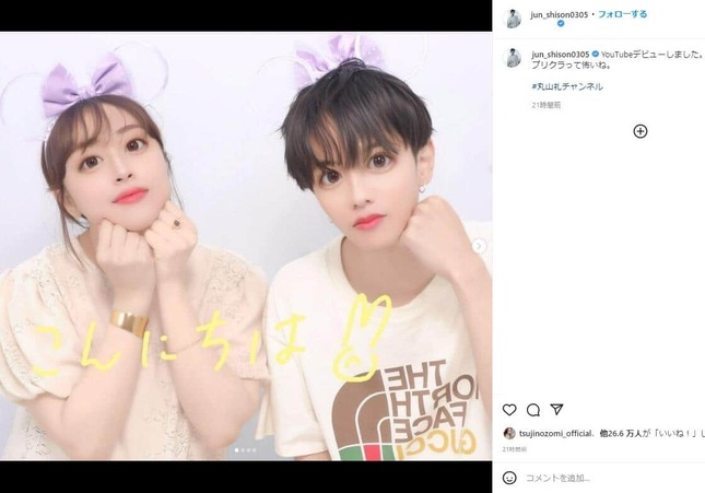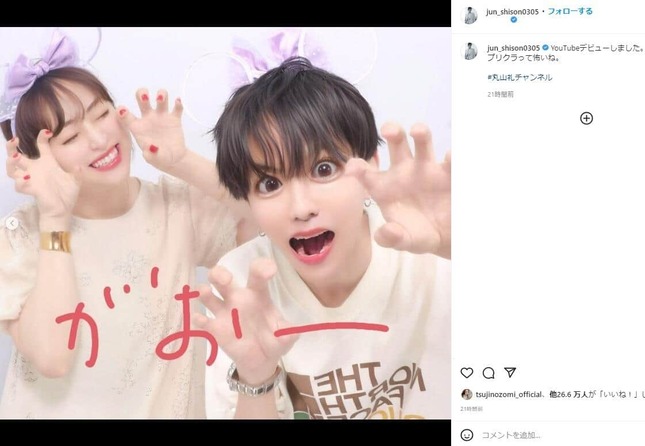 志尊さんは投稿で「YouTubeデビューしました。プリクラって怖いね」とコメントしながら、丸山さんとの2ショットプリクラを披露した。