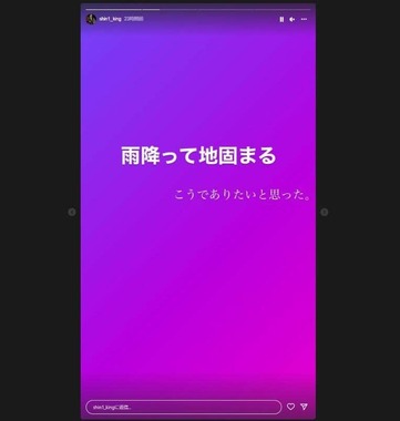 元タレントの坂口杏里さんの夫で格闘家の進一さんが2022年7月14日、「雨降って地固まる こうでありたい」などとインスタグラムのストーリーズに投稿した。