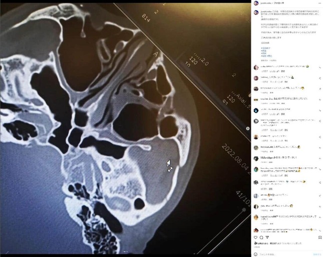 また、「心配おかけしました昨夜は救急外来のCTだけなので午前中にしっかり形成外科で検査してきます」とし、「過去に2度程眼窩ていの骨折をしているから折れやすいのかな?」と初めての経験ではないことを明かしていた。