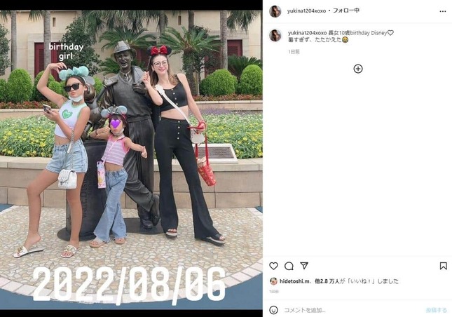 木下優樹菜、元夫フジモンと「家族ディズニー」満喫 現恋人Jリーガーも「いいね」で反応
