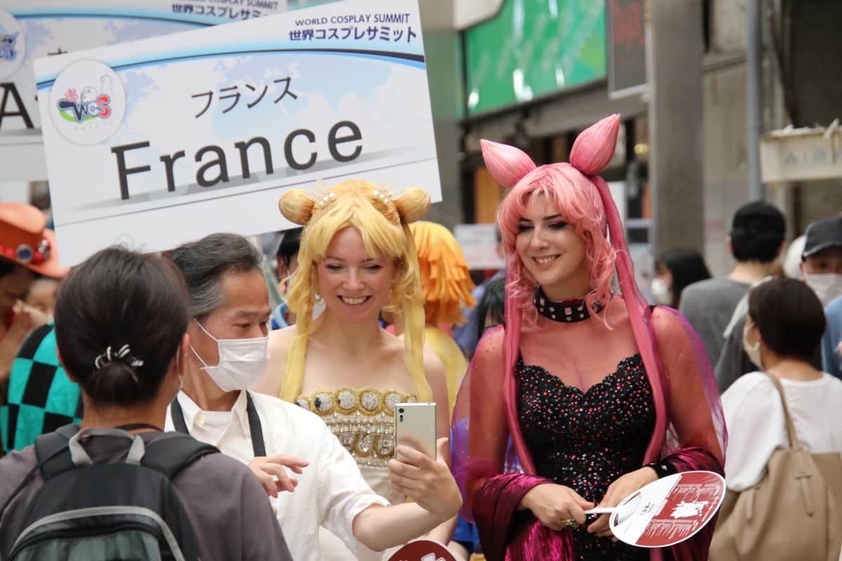 カメラを向けたりエールを送ったりする街の人々に対し、コスプレイヤーたちは笑顔で手を振る。目を輝かせる小さな子供に対しては、「ワンピース」のルフィに扮したコスプレイヤーは近づいてポーズを披露していた。ステージで優勝を果たしたフランスチームは人々とのツーショットにも応じていた。