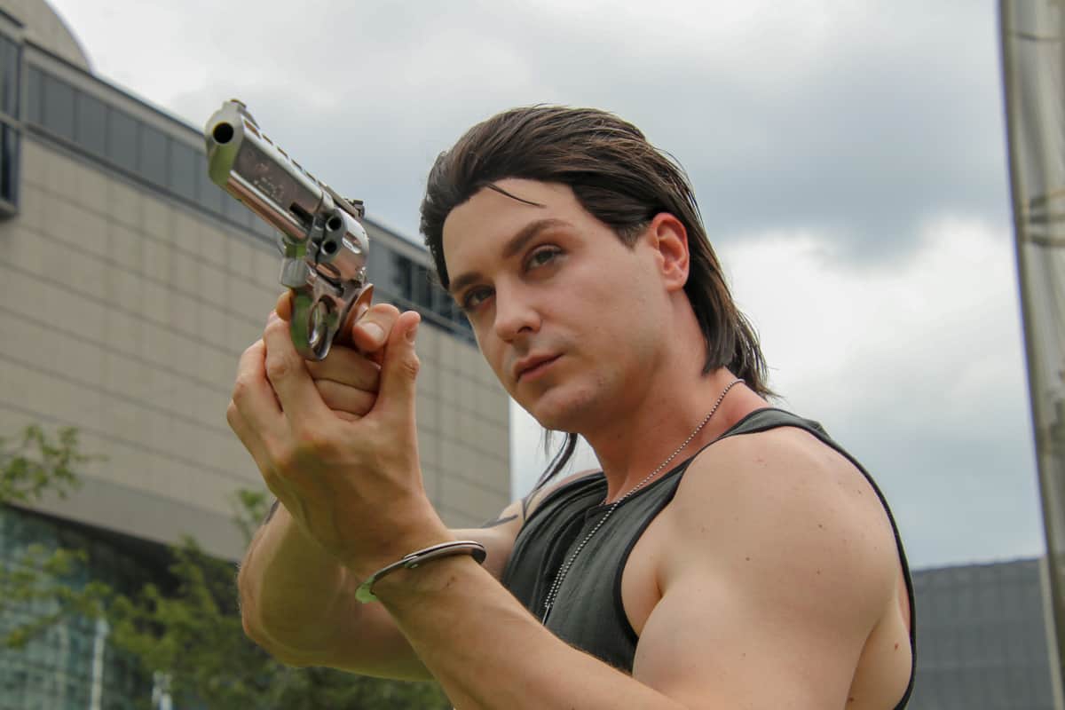 ビリー・ブルーさんは6日、「バイオハザード0」の主人公「ビリー・コーエン」に扮していた。日本のアニメやマンガに魅了され、約12年前にイギリスから来日。イベントに参加するために、東京からやってきた。