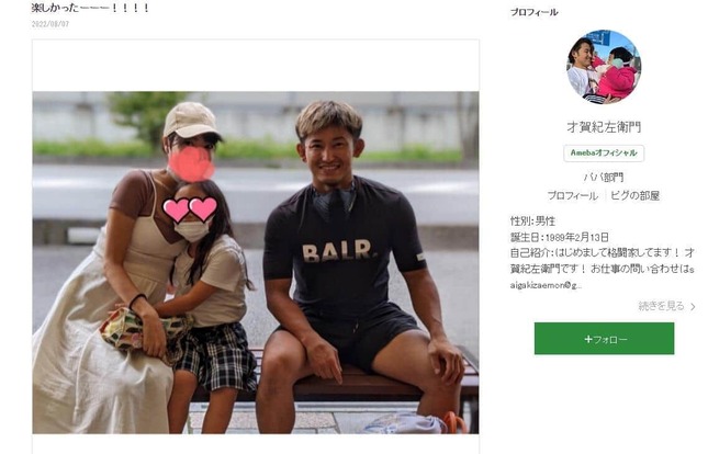 格闘家の才賀紀左衛門さんが2022年8月7日、家族での軽井沢旅行から帰ったとブログで報告した。