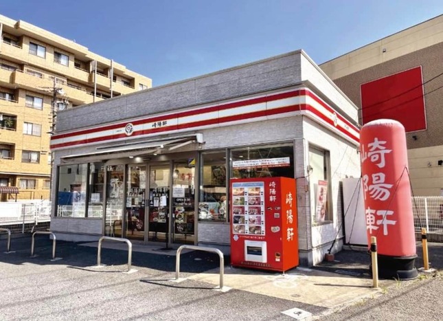 自販機を設置したのは、崎陽軒のロードサイド店舗・横浜日野店(横浜市港南区)の入り口横。真っ赤な外観が目を惹く自販機には「崎陽軒」の文字が躍る。