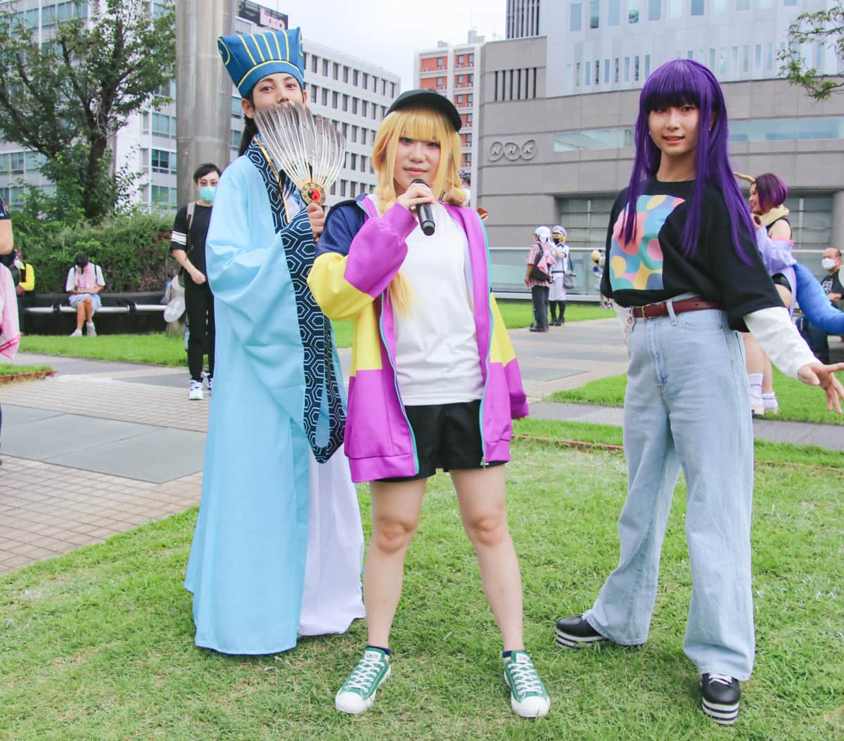 アニメ「パリピ孔明」の主人公・諸葛孔明に扮していた男性は取材に対し、妻とその友人の付き添いで参加したと話す。イベント参加のために大阪から訪れていた。同作のヒロイン・月見英子に扮していた妻のゆうりさんは、次のように話す。