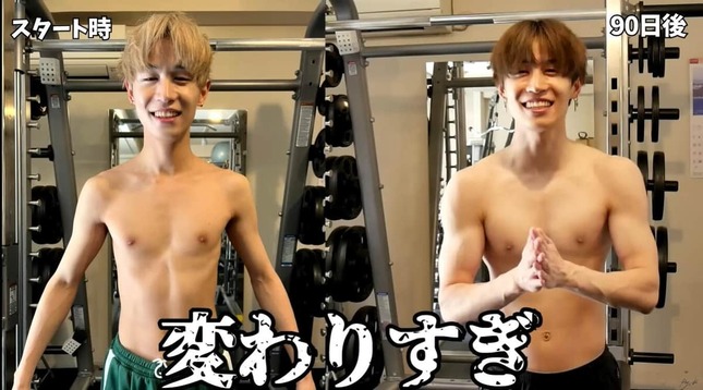 この3ヶ月間のトレーニングでヒョクさんは、胸筋、腹筋、腕、背筋、肩などが見違えるほどになっており、テロップで「変わり過ぎ」と驚き。さらに体重は53.7キロで、プラス4.1キロだったという。