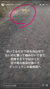 続く投稿では「歩いてるだけで目も合わせてないのに襲って噛み付いてきて 恐怖すぎてやばかった」と記す。狂犬病に感染していないか不安を感じたといい、現地の病院でワクチン接種の処置を受けた。次のように説明している。