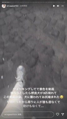 夜ごろの投稿では「初めてのことすぎて焦ったのよ」といい、当時の状況を「目を合わさずにお尻噛まれながらゆっくり前をホテルの方に進み続けていった」と補足。噛まれた場所はアザのようになったとする。