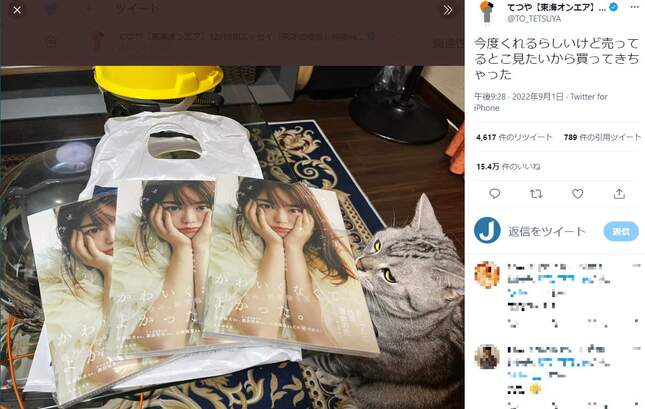 てつやさんは同日夜、峯岸さんのスタイルブックを3冊並べた写真とともに「今度くれるらしいけど売ってるとこ見たいから買ってきちゃった」と報告。この投稿に対し、ファンからは「めっちゃ愛感じる」「一冊じゃないとこ嫁大好きやな」など夫婦愛を感じたという声や、「旦那なのに最高にオタクしてて可愛い」「3冊買うあたり、ちゃんとオタクだよね」と、てつやさんのオタクぶりを指摘する声が相次いだ。