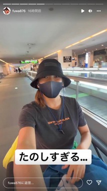 といい、機器に任せて空港内を移動しながらカメラに手を振る自撮り動画を披露した。平行してインスタグラムのストーリーズにも動画を投稿し、「たのしすぎる...」と文字で伝えた。