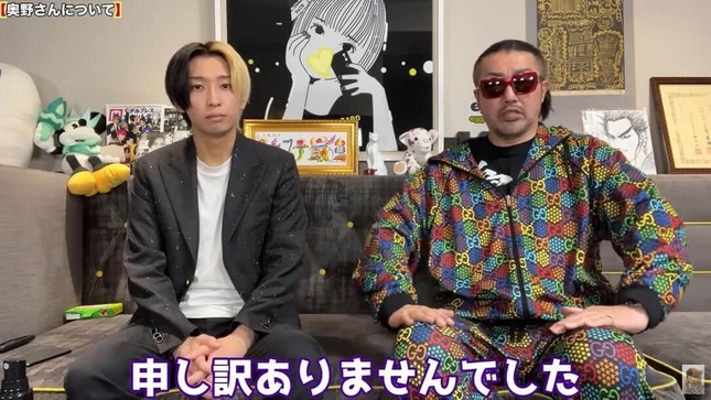 奥野氏は2022年9月29日、ヒカルさんのYouTubeで公開されたに「メイウェザー選手に花束を放り投げ大炎上中の張本人を呼び出しました」と題した動画に登場。格闘技興行「超RIZIN」で、フロイド・メイウェザー・ジュニア選手に手渡す予定だった花束を、リング上に投げ捨てた件について謝罪した。
