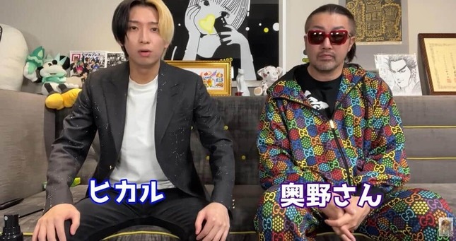 YouTuberのヒカルさんと奥野氏が座ったソファの奥に、なぜか「たけのこの里」が置いてあったのだ。視聴者からは、「ヒカルさんの左にある食べかけの【たけのこの里】が気になってしょうがなかった」といった声が上がっている。