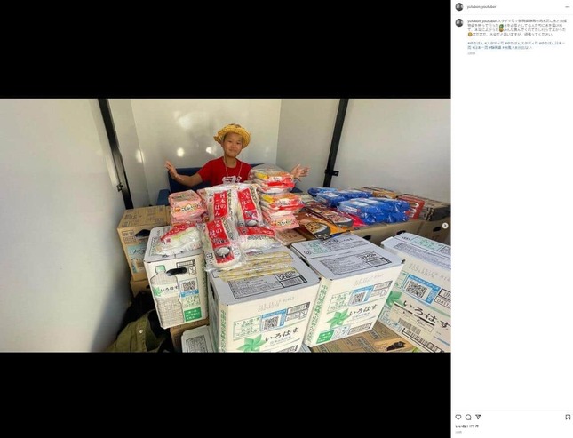大量のレトルトご飯や水などの救援物資を前にしたゆたぼんさんは、静岡県で台風による被害を受けた人からSOSの連絡を受けたとして「水とか、必要かなって思う救援物資をね。今から届けていきたいと思います」と宣言。「ゆたぼんスタディ号」の中国地方での撮影を始めるところだったが「困っている人たちに救援物資、水200本以上を届けたいと思います」と、急遽予定を変更し静岡県に向かうとした。