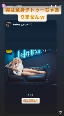 タレントの加藤紗里さんが2022年10月4日にインスタグラムのストーリーズを更新し、話題になった「全身タトゥー」について、実際は偽物だったことを明かした。