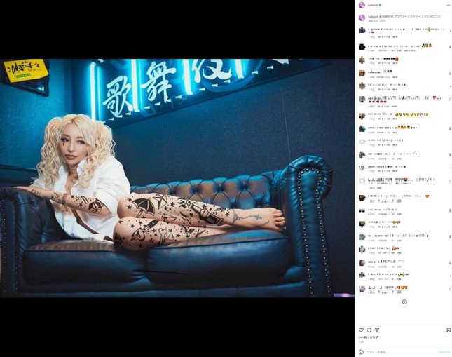 発端となったのは、加藤さんが9月30日にインスタグラムで、タトゥースタジオのプロデュースを始めたと報告したこと。投稿では、背中に入った大きなヤモリのタトゥーの写真や、尻から脚、腕や背中にもさまざまな絵柄のタトゥーが入った写真を公開していた。