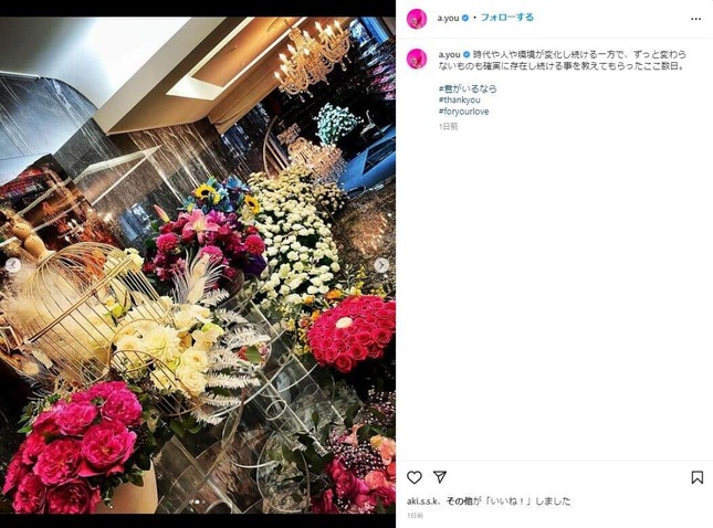 浜崎あゆみさんのインスタグラム(a.you)より