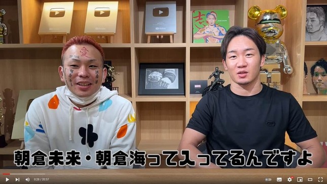 格闘家でYouTuberの朝倉未来さんが2022年10月10日公開の動画で、顔面に「朝倉未来」の文字タトゥーを彫った男性と共演した。