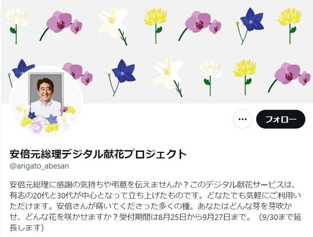— 安倍元総理デジタル献花プロジェクト (@arigato_abesan) October 16, 2022