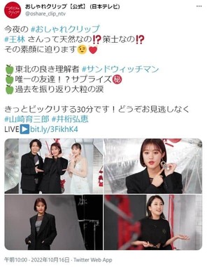そんな王林さんの特徴といえば、やはり津軽弁だろう。16日放送のトーク番組「おしゃれクリップ」(同)でも、「青森のなまりを恥ずかしいとかって思ってる人たちが、そう思わないでいてくれたらいいな」と、津軽弁へのこだわりを語っていた。