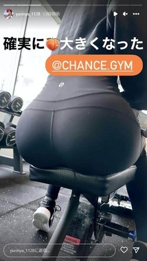 続いて、ジムでのトレーニング中に撮影した写真を公開し「確実に(桃の絵文字)大きくなった」とした。写真は、トレーニングマシンに座るゆりにゃさんのお尻を後ろから撮影したものだ。