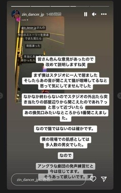 また、その後の投稿で、声が聞こえた場所はやはりスタジオの中だったとのこと。「なので猫ではないのは確かです。僕の現場の肌感としては多人数の男女でした」「なのでアングラな劇団の発声練習だと今は信じています。そうあって欲しいです」とつづっていた。