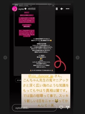 浜崎さんは「やはり真相は闇です」と語り、「では猫の喧嘩って事で、スッキリ新しい1日をニャーってかんじで!笑」と強引に締めくくっていた。