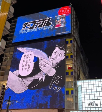 大阪の各所に掲出されている漫画「ザ・ファブル The second contact」の広告がユーモラスだと注目を集めている。キャラクターが原作で手にする拳銃が、広告では全て「サンマ」に置き換えられているのだ。
