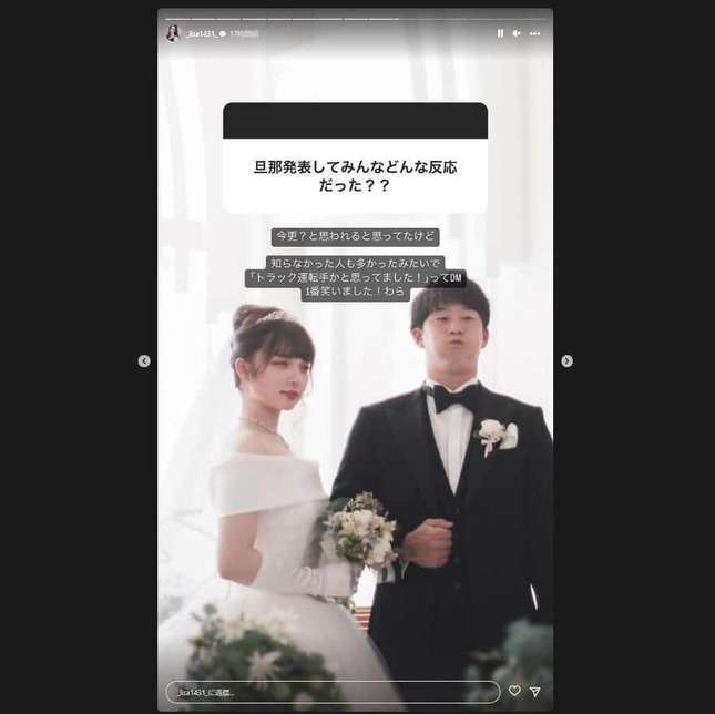 さらに渡辺さんは、「旦那発表してみんなどんな反応だった?」という質問に対し、「今更?と思われると思ってたけど知らなかった人も多かったみたい」と報告。また、「トラック運転手かと思ってました!」というDMも届いたそうで、「1番笑いました!」と明かしていた。
