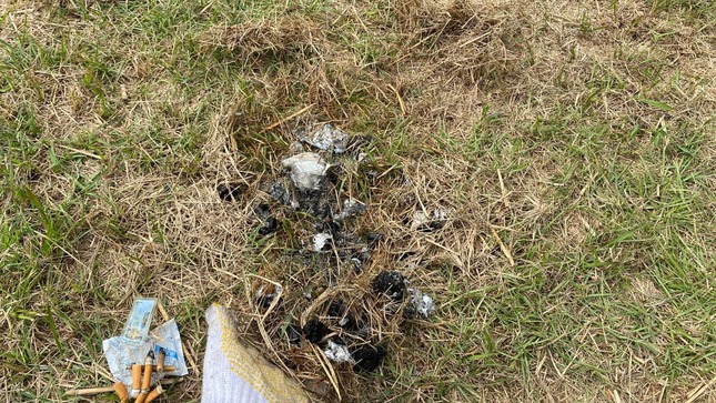 しかし、相手が撤収した後、昼の投稿で「前言撤回」。多数のタバコの吸い殻と細かいゴミが枯草の下から出てきたという。実際の写真では、焦げたアルミホイルや菓子のプラスチック容器が確認できる。モロケンさんはゴミは拾って焦げ跡を削るなどして「できる限り綺麗にした」と報告。これらは隠されていたとも指摘し、相手の大学に電話すると投稿した。