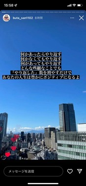 そして11月17日、ブタさんは、ビル群と空の写真に「何かあったらやり返す 何かなくてもやり返す 何があってもやり返す」などのコメントを添えた画像を投稿した。