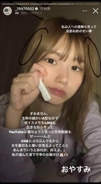 プロ野球選手からモラルハラスメントを受けたことを告発したYouTuberの「あいにょん」こと大塚愛里さん(25)が2022年11月22日夜から23日未明にかけて、当該選手への怒りをインスタグラムで吐露した。