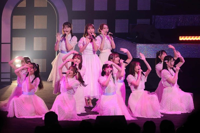 11月26日の公演初日には、「最後の1期生」にあたる本村碧唯さん(25)が卒業発表したばかり。公演2日目は12年目に入ってから初めての大規模なイベントで、「未来への継承」をテーマに掲げた。先輩と後輩メンバーがペアになって分野ごとに「継承」するパフォーマンスを披露したり、年内に卒業するメンバーを特集するコーナーが設けられたりした。終盤には、最新シングル「ビーサンはなぜなくなるのか?」(22年)を若手メンバーのみでサプライズ披露。世代交代の形が少しずつ見えてきた。