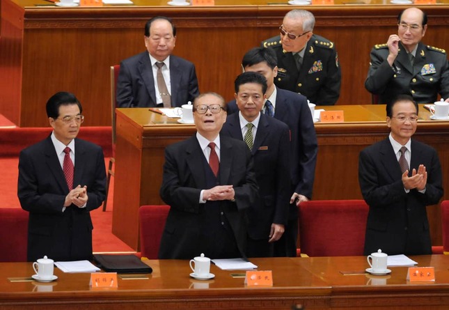 死去した江沢民氏(中央)。2011年9月の辛亥革命100年記念式典に出席したことで、産経は誤報を認めた(写真:代表撮影/ロイター/アフロ)
