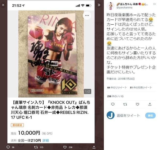 「自分ではサイン転売にキレてるのに那須川天心のなりすまし偽サイン売ってて酷い」