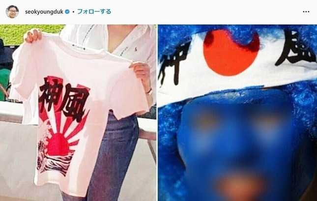 インスタグラムにはそのTシャツを手に持つ人物と顔を青色でペイントし神風と記された鉢巻を巻くサポーターの写真が添付されている。撮影された日時や場所、人物などは特定されていないが、ソ教授によるとW杯カタール大会の日本戦を観戦していた人物から情報提供を受けたという。
