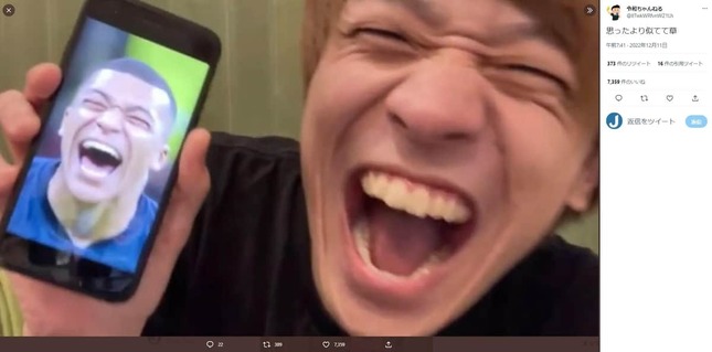 チャンネル登録者数約24万のYouTuber「令和ちゃんねる」さんが真似した、サッカーフランス代表FWキリアン・エムバペ選手の笑顔が似ているとツイッターで話題になっている。
