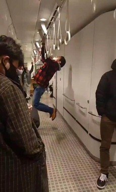 北村氏は、この行為を認め、「乗車マナーに反する行為で、許されるものではない」と謝罪した。一方で、なぜ懸垂をしたのかについては、「大変お恥ずかしい話ですが、記憶が定かではございませんで」と言葉を濁した。さらに、突っ込まれても、「その辺の記憶も、ちょっとですね、私それをやったかというところも定かではないので」「細部については、定かではないというか、覚えていないということなんですね」と同様な発言を繰り返した。