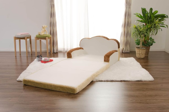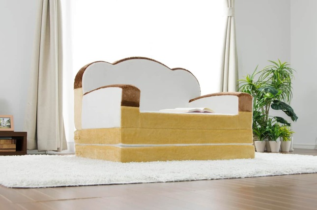 ふんわりとした食パンを模した「食パンソファベッド」がかわいいとSNSでたびたび話題になっている。ふわふわとした手触りの低反発ソファで、折りたたまれた座面を広げれば寝転がることもできる。神奈川県厚木市のソファメーカー・セルタンが開発した。