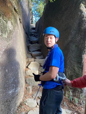 左手だけで体を持ち上げるのは難しく、どうにかよじ登り、時には岩場にいったん座って、足を手で持ち上げて、また立ち上がって...。登山に慣れておらず、そんな風に手探りで進みました。細くてもどうにか足を置ける隙間を探し、それもなければ同行者の肩を借りざるを得ませんでした。一歩一歩が慎重でした。