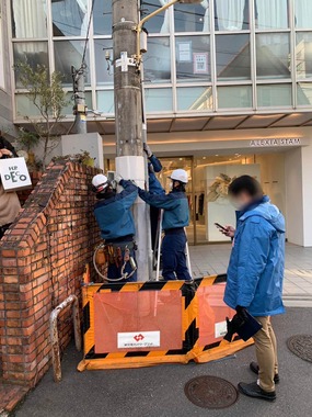 電柱を管理する東京電力パワーグリッドは取材に「現場の混乱回避と景観保護のために張り紙防止シートで被う対応をしました」と話す。