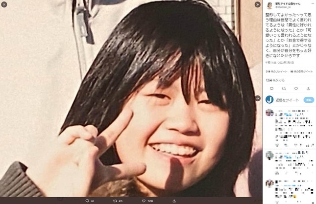 整形してよかった?って思う理由は世間でよく言われてるような「異性に好かれるようになった」とか「可愛いって言われるようになった」とか「お金で得するようになった」とかじゃなく、自分が自分をもっと好きになれたからです pic.twitter.com/eiPvYWal1n