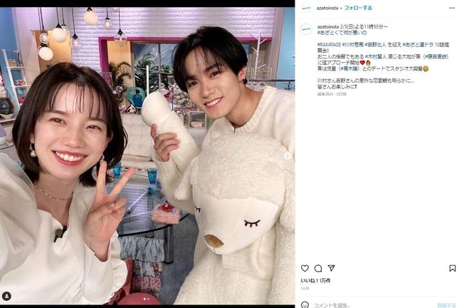 2023年2月5日に放送された「あざとくて何が悪いの?」(テレビ朝日系)に、THE RAMPAGE from EXILE TRIBEの川村壱馬さん(26)が出演し、自身の恋愛観を語った。