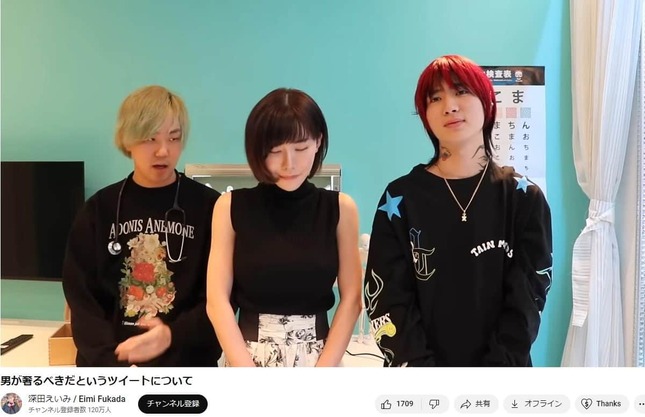 13日、「男が奢るべきだというツイートについて」と題して公開した動画で深田さんは、「今回はツイートの件で世間を騒がせてしまい、本当に申し訳ございませんでした」と言い、深々と頭を下げた。