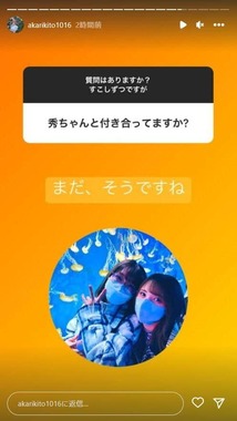 鬼頭さんはこの日、インスタグラムのストーリーズでファンからの質問を募集。その中で「秀ちゃんと付き合ってますか?」という、女性声優の内田秀さんとの仲についての質問が取り上げられた。